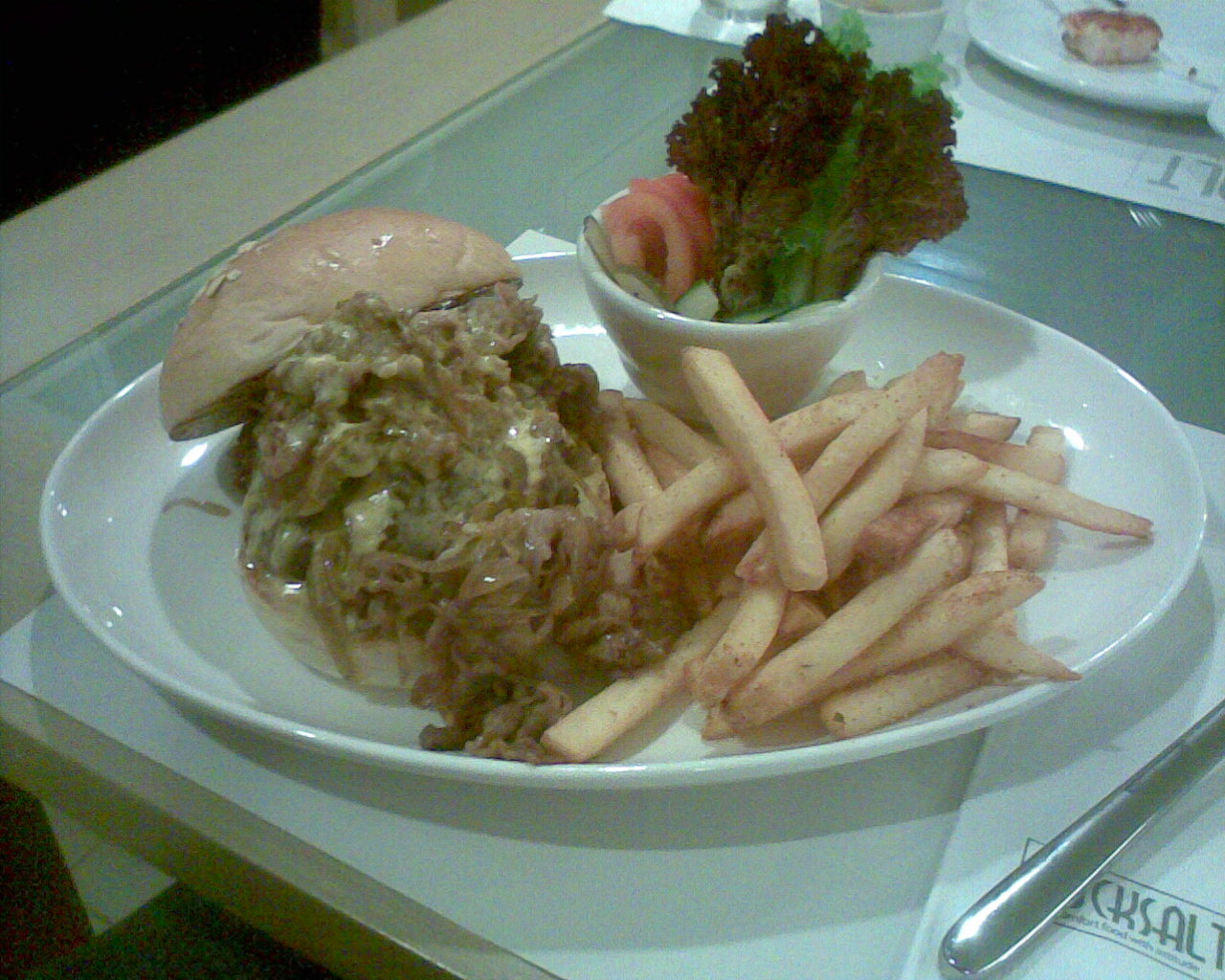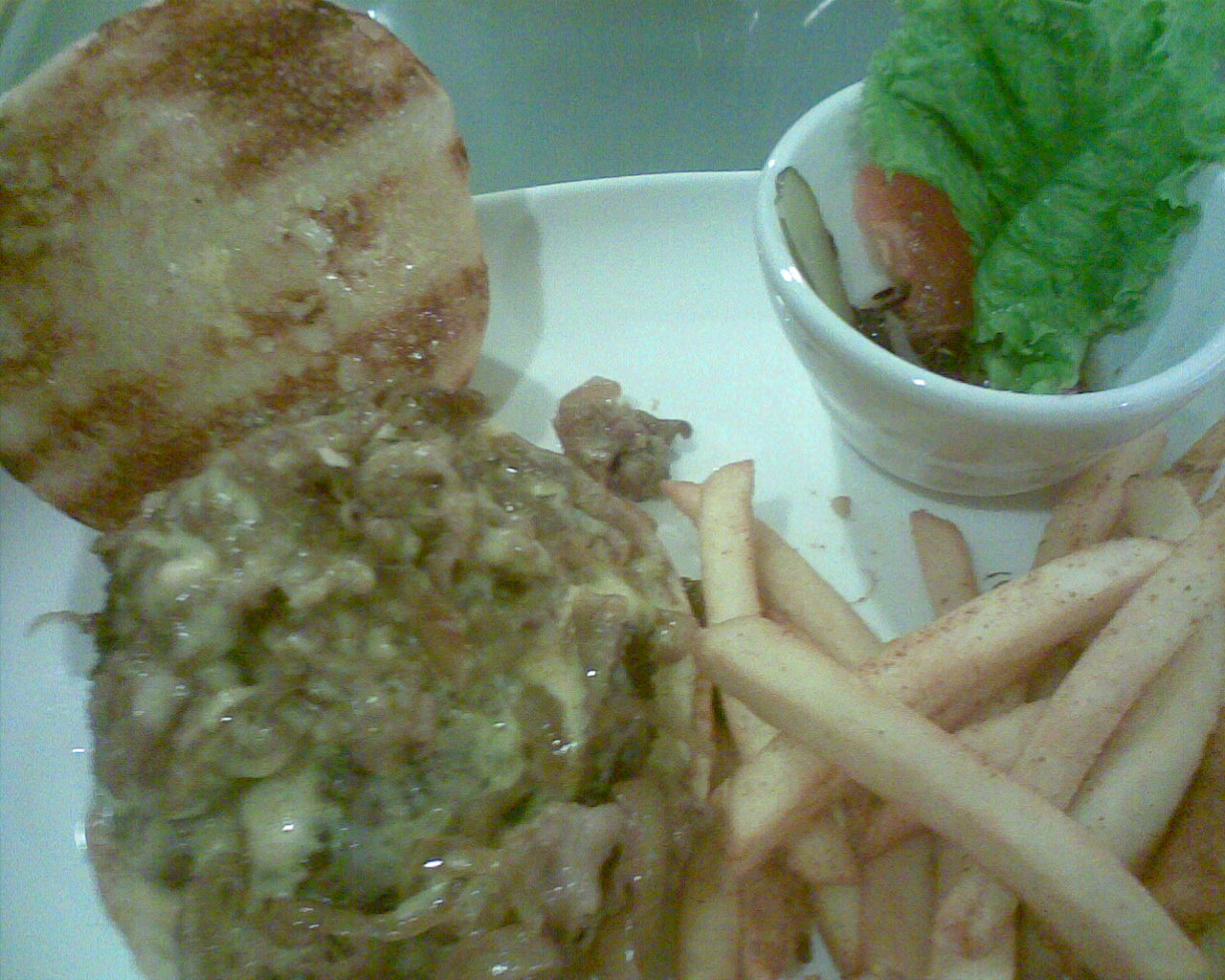 This is their Cheese Steak Burger, obviously based on the Philly Cheese Steak premise. I wasn’t expecting it to be so large. And delicious. Panalo to. I asked for it well done, but it was delivered, at best, medium well, which wasn’t half-bad. The cheese steak was ridiculously good. Hindi ko naubos in one sitting. Plus the side salad was great.