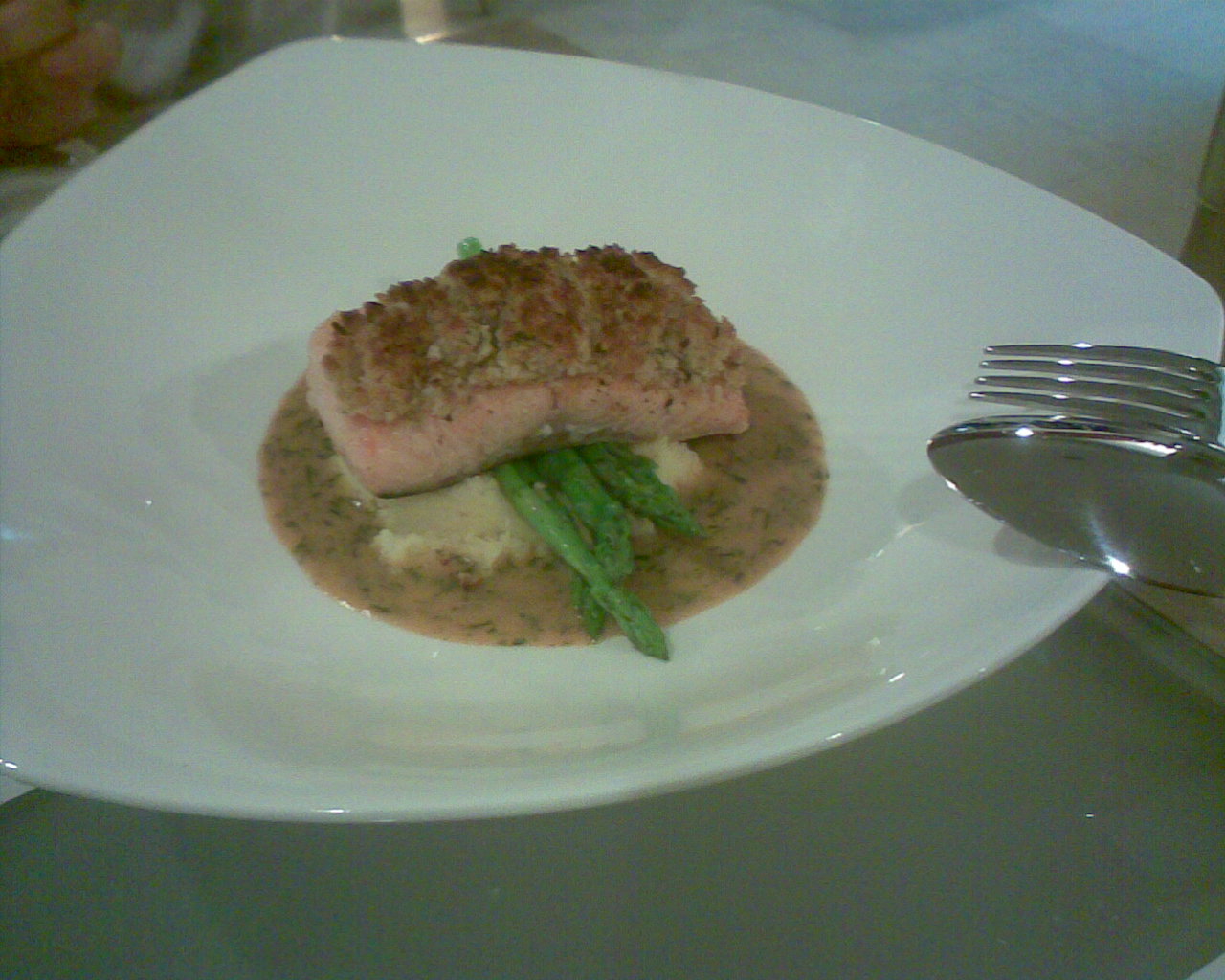 This is the pan-fried salmon with asparagus and dill cream. It’s larger than it looks. Flaky goodness, check. Well-cooked fish, check. Breadcrumbs on top, check. Dill cream, check. Sarap sarap? Check.