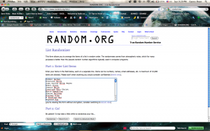 I then ticked the Randomize button. Whoever topped the list (#1) would win the CD. This is the result: