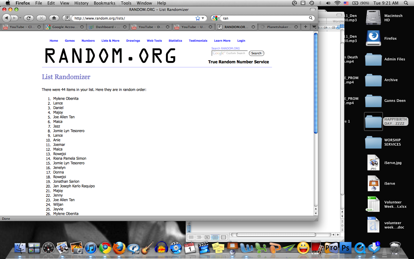 Here‘s the screengrab of all the entries, and the screengrab of the Random.org list randomizer that had the top four names as winners.