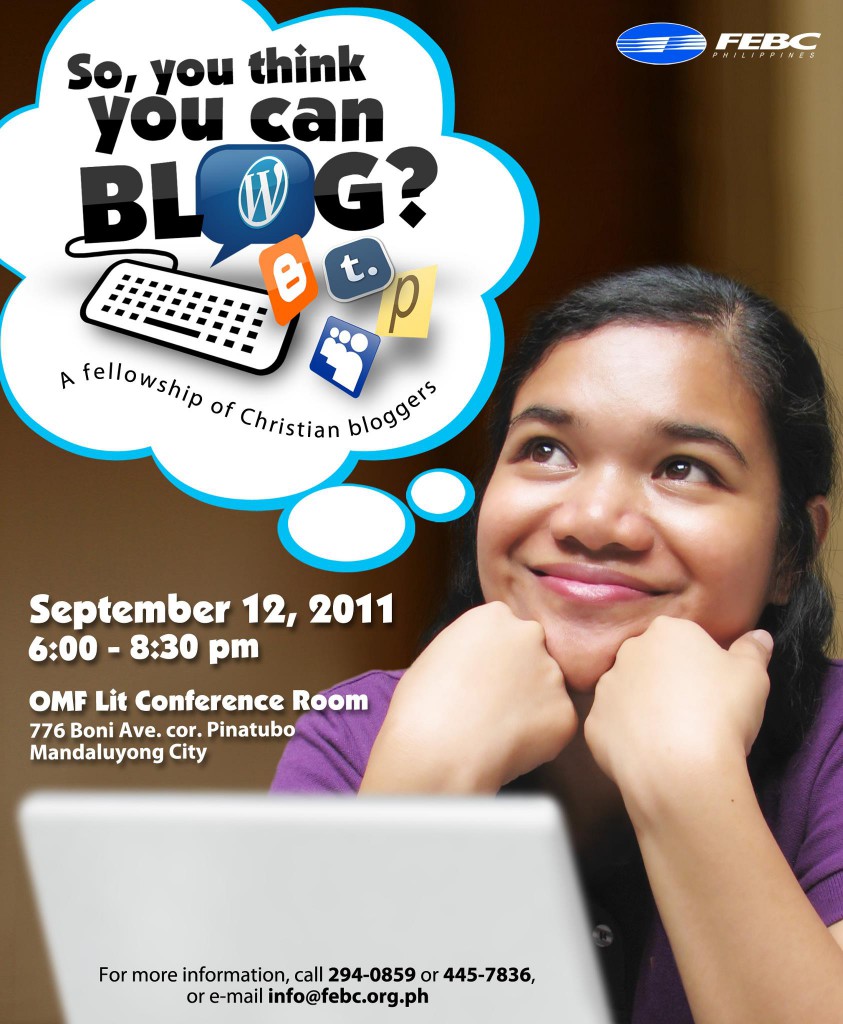 Brought to you by OMFLit and FEBC, today’s event aims to connect Filipino-Christian bloggers, so that we may learn from each other, cover each other in prayer, and be encouraged by our fellowship. I will share a little bit of my experience as one of the more, um, senior Christian bloggers at the event.