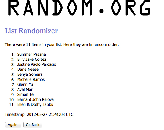 The winners need to contact me on FB so we can arrange pickup or delivery of your prizes. (Especially to Billy Jake in far-off Tuguegarao and Justine Paolo in God-loves-Baguio!)