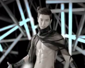 For the first time in SuJu history, Siwon does not get the introductory vocal. (That’s a joke.) But we still get Siwon in his half-naked glory, because, as he himself puts it, when he starts off a song, it’s a hit. Which is why I wonder why they didn’t stick to the vocal formula but kept it for the video. Exactly how much pimping of my fellow Christian does SM Entertainment intend to do?