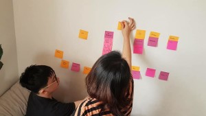I was initially hesitant–my vision of core values saw them as values that would stand the test of time, rather like La Salle’s Religio, Mores et Cultura–but the feedback that it was high-pressure and performance-driven could not be ignored. So Caths led us in a Design Thinking exercise that gave us the opportunity to write down different values that were important to each of us. We then categorized them together into groups of similar intention, and grace, God-centered, joy, respect, and excellence were the values that stood out.